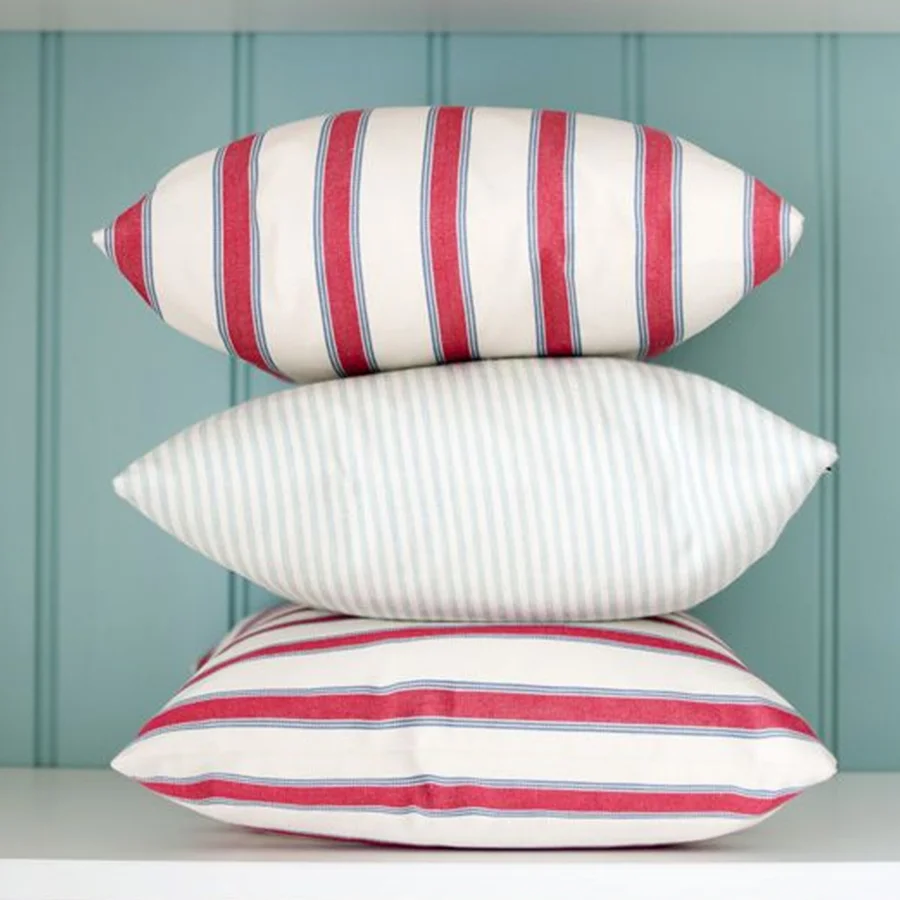 Elegant, classic, timeless and hardwearing quality 100 per cent natural fibre fabrics from Ian Mankin in ticking, check, florals and stripe design patterns.